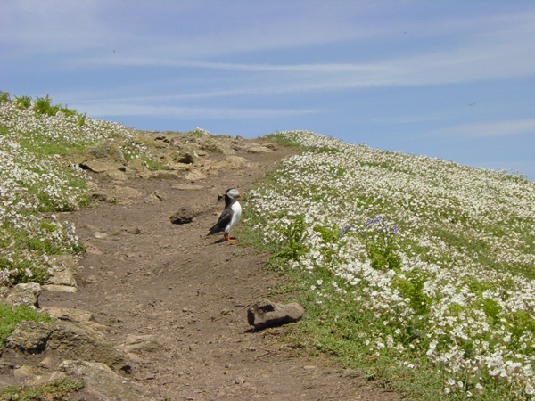 ペンギンみたいですが、ちゃんと飛びます。大きさは30cmくらい。主にアイスランドで棲息しているらしく、イギリスでもウェールズにあるSkomer Islandという野生保護の島くらいでしか見れないようです。一日3便くらいのボートで島まで行くのですが、島には、店という店もないので、何か食べるものを持っていった方がいいですね。関係ありませんが、下の写真はすべて、ソニー・サイバーショットP1で撮影したものです。